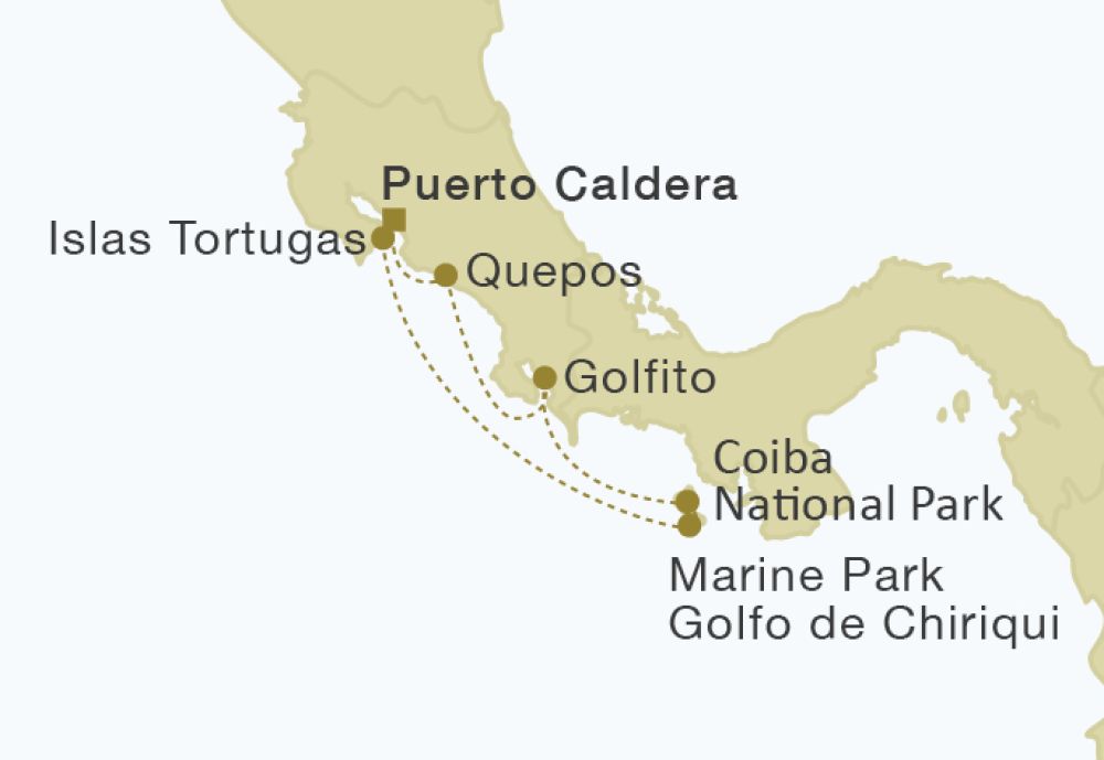 Puerto Caldera is the cruise port that is the major gateway to Costa Rica's Pacific Coast, at 80 km distance from the capital San José. A cruise extension to the Arenal Volcano or Monteverde Cloud Forest is not to be missed
