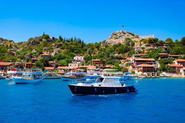 Situated just off the Lycian coast, Kekova Island boasts a haunting beauty, with ancient ruins lying beneath its waters. The ship will sail in the area between the island and Simena Castle before staying at anchor. Passengers can go ashore at Çayağzı beach (on the mainland), where they can relax or take an optional tour. A glass-bottom boat tour will take you close to the island, offering glimpses of the sunken city of Kekova, and they you can visit the small coastal village of Kaleköy and Simena Castle. The submerged stone walls and stairways of the ancient Lycian city are visible through the clear, turquoise water. Another optional tour will take you to the ancient city of Myra, home to a remarkable Lycian necropolis. Kekova offers a serene blend of history and nature, providing a timeless vision of the Turquoise Coast of Türkiye.