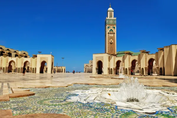 Long before Ingrid Bergman and Bogie made Casablanca a symbol for romance, the city was famous for intrigue and mystery. Veiled by overlapping mantles of French, Arabian and African culture, Casablanca reveals new faces at every turn. The enormous Hassan II Mosque (holding 70,000 worshippers) is the new Morocco, while the fanciful Mauresque buildings in the Medina impart visions of pre-war Casablanca.